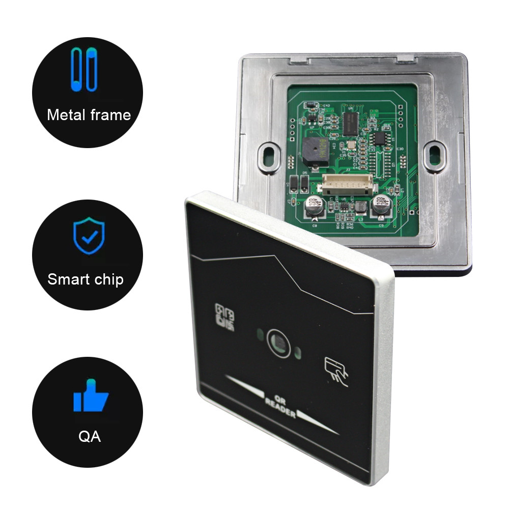 Q1 RFID Card & QR Code reader می تواند کارت ID (IC Optional) را بخواند و بارکد/QR Code را بخواند، دستگاه با بدنه فلزی است که می تواند با ضمانت کیفیت بالا باشد.ابعاد آن اندازه استاندارد 86 است.این نوع خواننده می تواند به خوبی برای مدیریت دسترسی چندگانه استفاده شود.